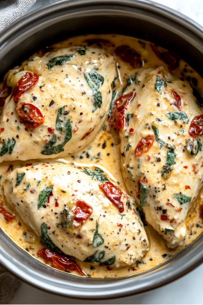 - Add sun-dried tomatoes and spinach during the last 30 minutes of cooking.