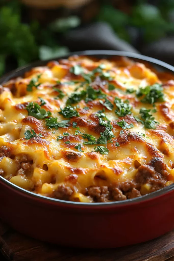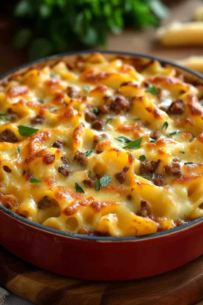 This dish blends textures and tastes beautifully—hearty meat, tender pasta, and rich, cheesy goodness—making it an instant crowd-pleaser.